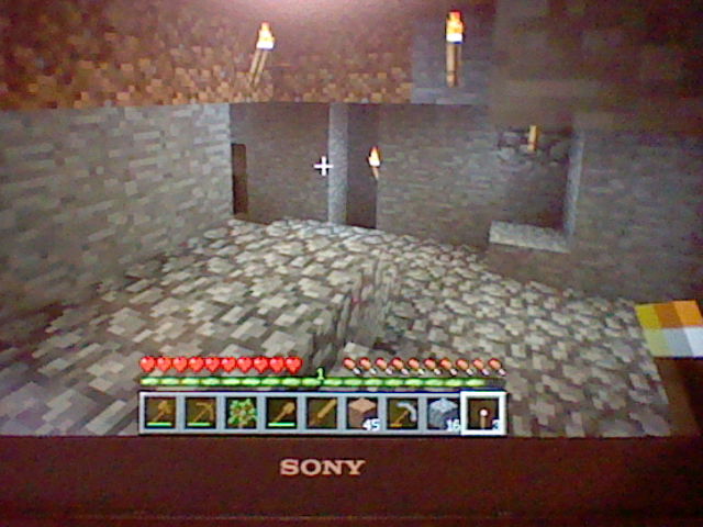 地下生活なのは木ピッケルで石採掘してる間に夜になったから急いで天井埋めたんだよ。