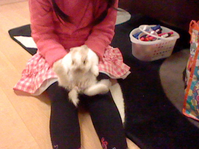 妹が可愛いうさぎを持っています♪w