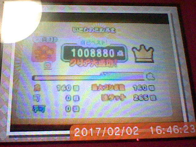 良160、可0、不可0、最大コンボ数160…