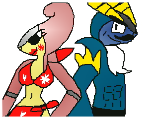水着に着替えた夫婦 コバルオン夫 リーフ・メタル王 ビリジオン妻リーフ・桜女王