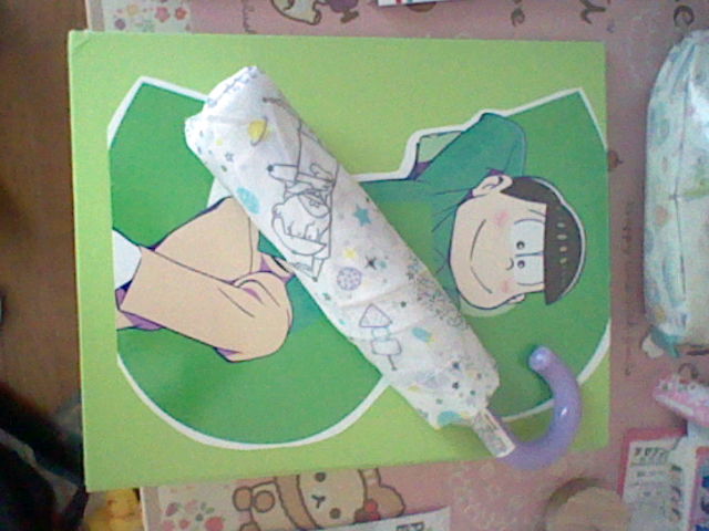 てか最初に貰ったのはこの全松が描いてある折り畳み傘ね。カバーにはわしが大好き保留組が描いてあったもんだからチョロりんを写したよ。υωυ*