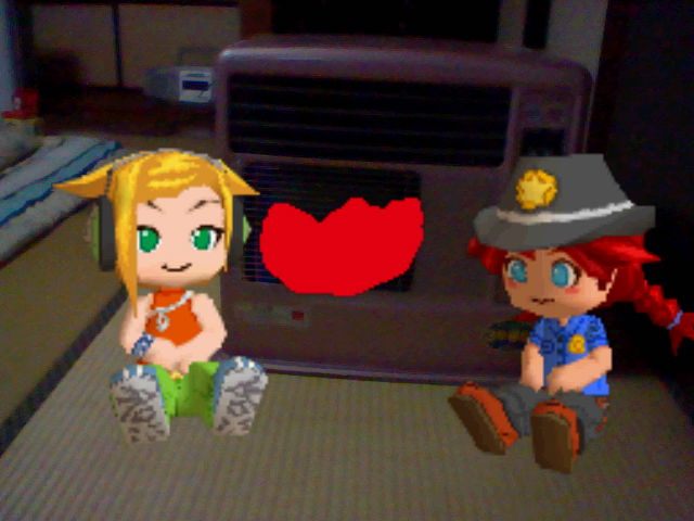 ストーブでくつろいでる二人