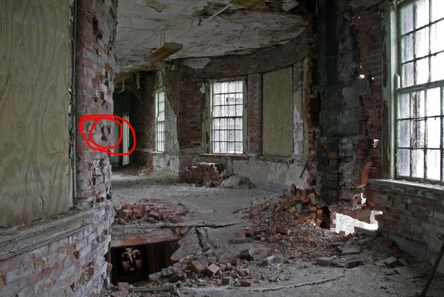 左下のレンガの中に顔が…。