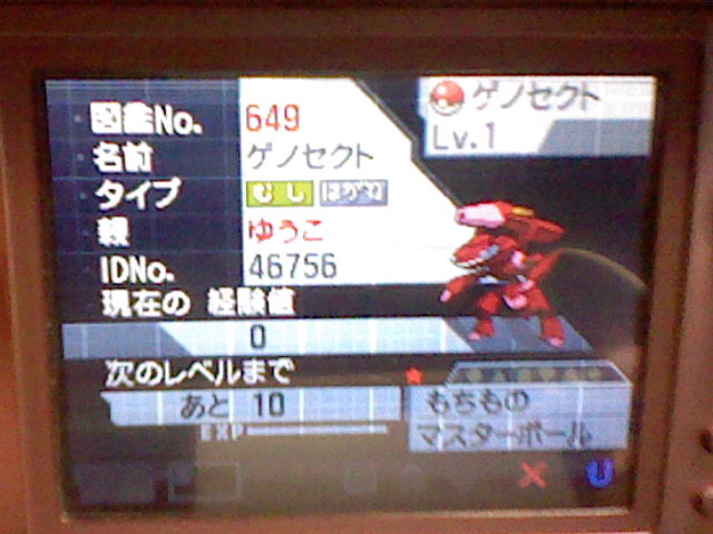 このゲノセクト色違い!!しかもマスターボールつき!!
