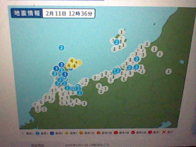 2024年2月11日12:36頃 石川県登地方で地震 最大震度4 マグニチュード4.7 深さ10km 地震による津波はありません